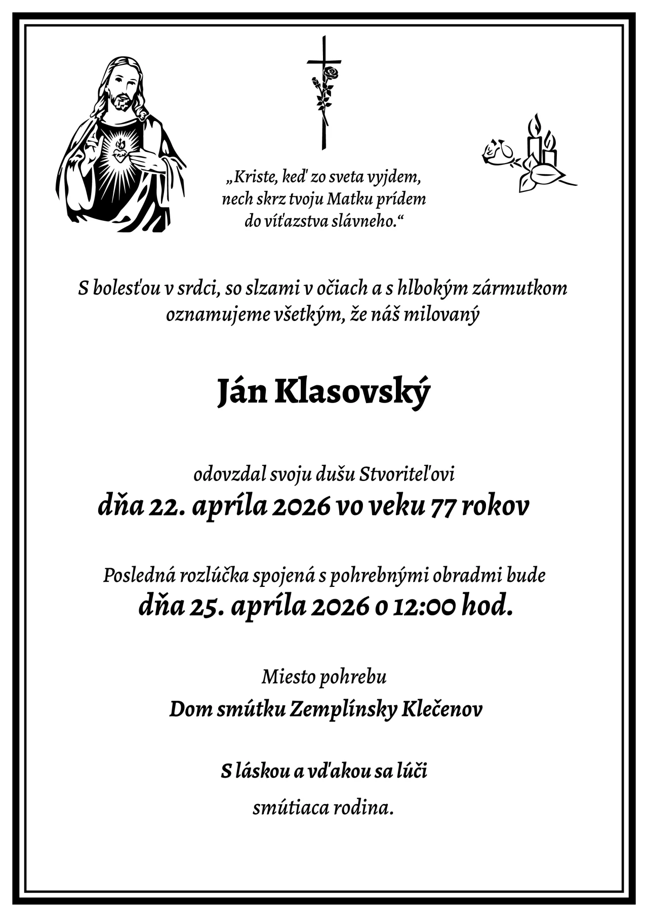Kolektív Pohrebnej služby ULTIMA vyjadruje úprimnú účasť v bolestivých chvíľach. Prajeme rodine a blízkym veľa pokoja a vzájomnej podpory.