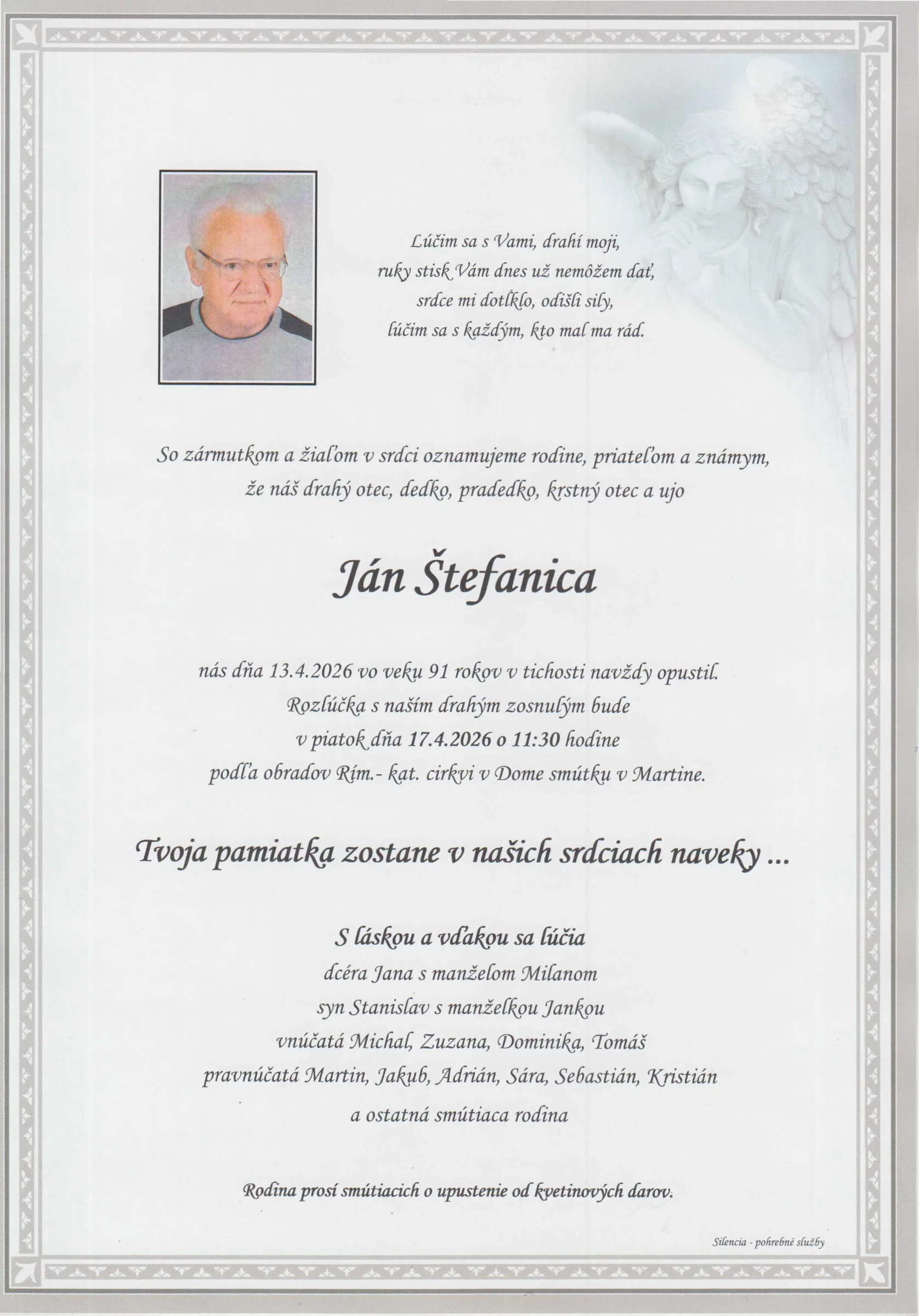 Kolektív Pohrebnej služby Silencia vyjadruje úprimnú účasť v bolestivých chvíľach. Prajeme rodine a blízkym veľa pokoja a vzájomnej podpory.