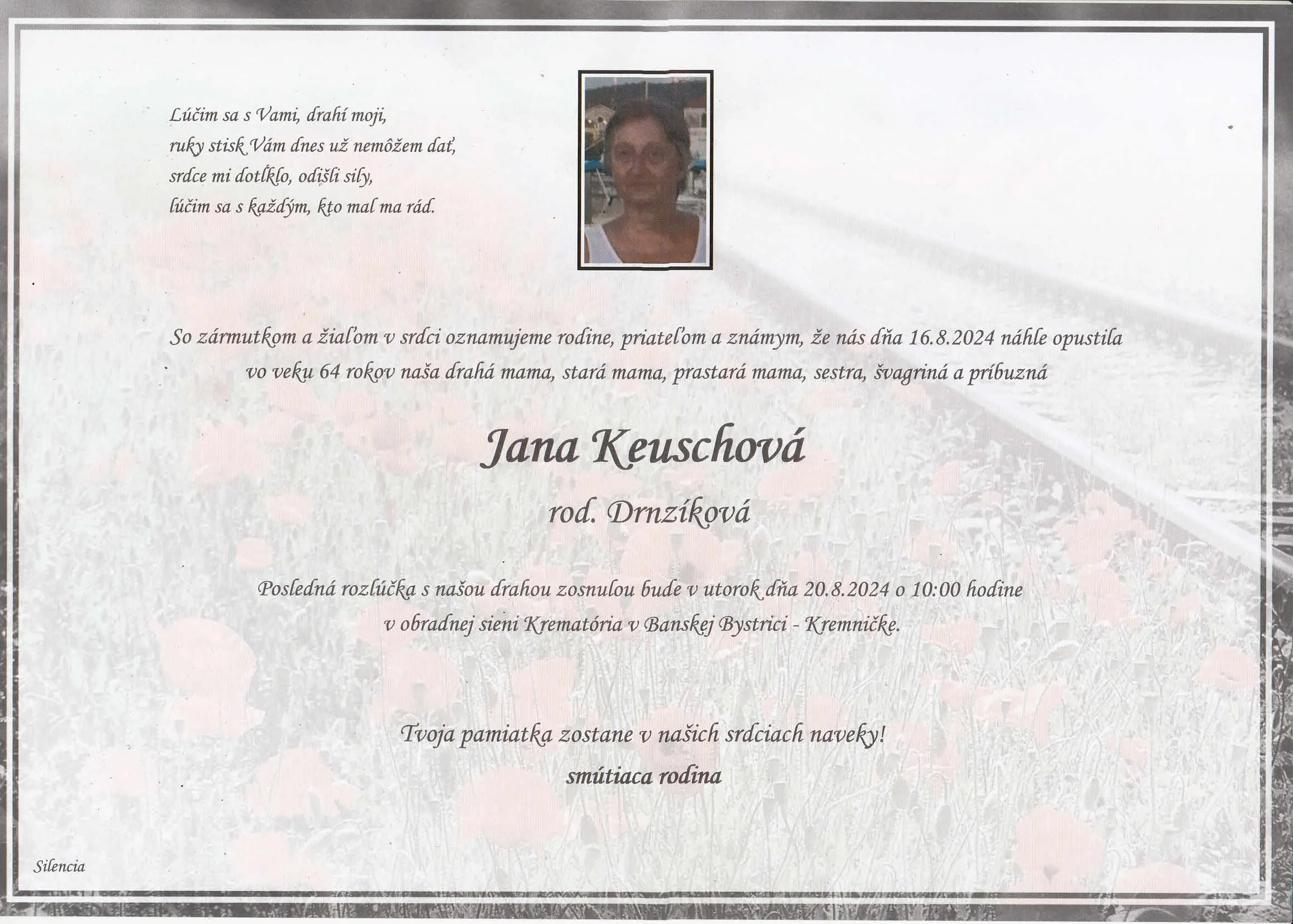 Zatiaľ neboli pridané žiadne kondolencie.