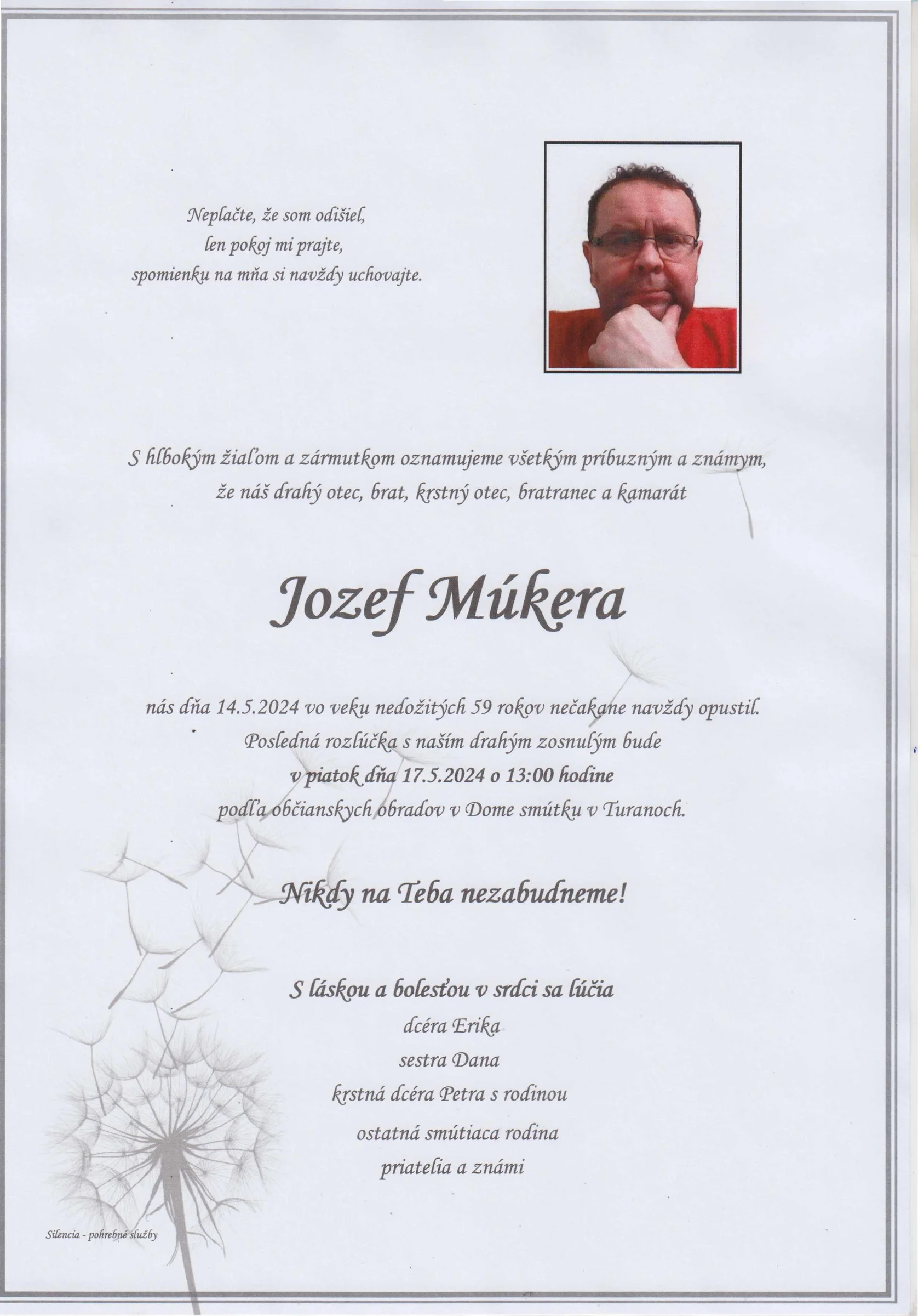 Zatiaľ neboli pridané žiadne kondolencie.