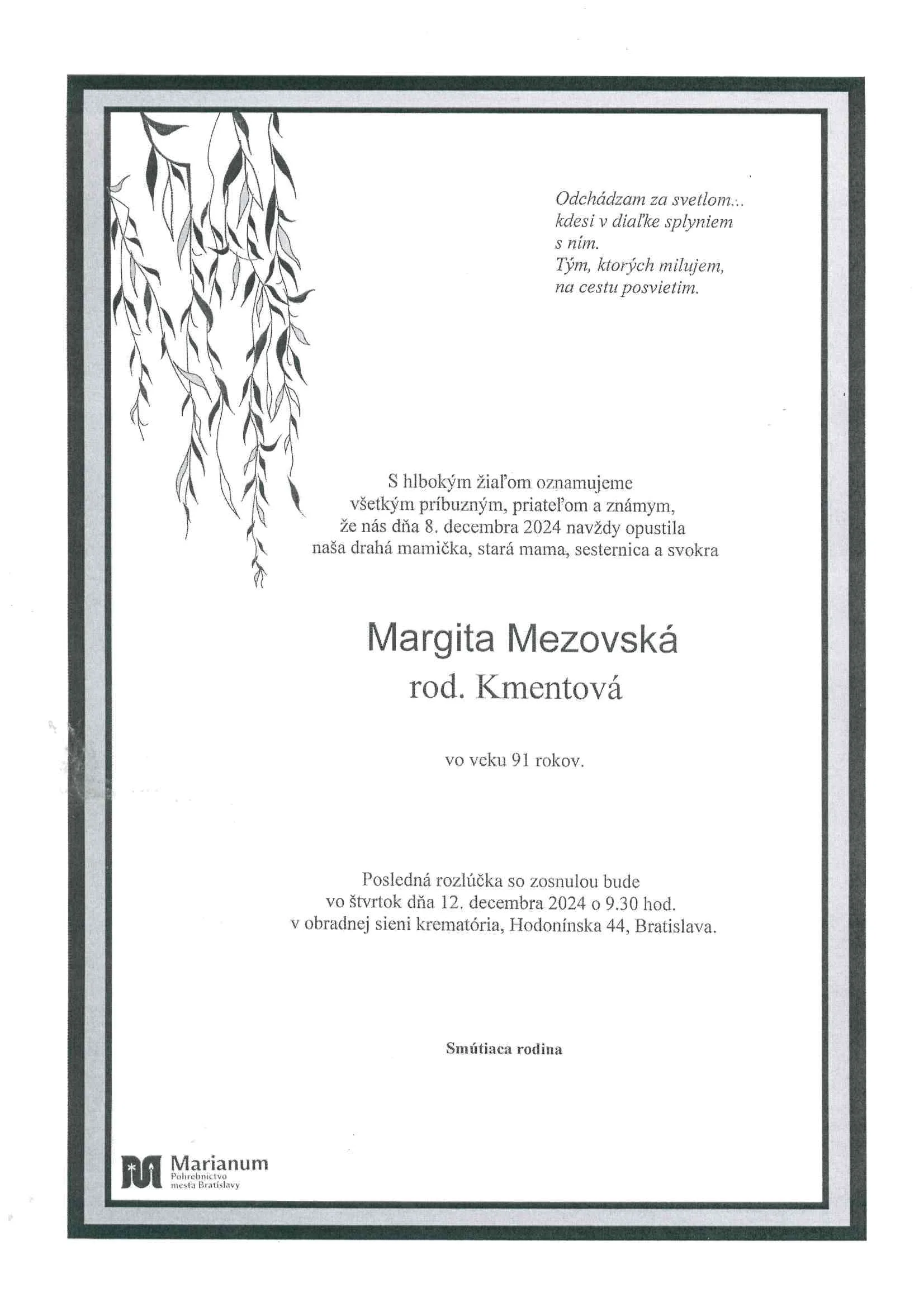 MARIANUM Pohrebníctvo mesta Bratislavy