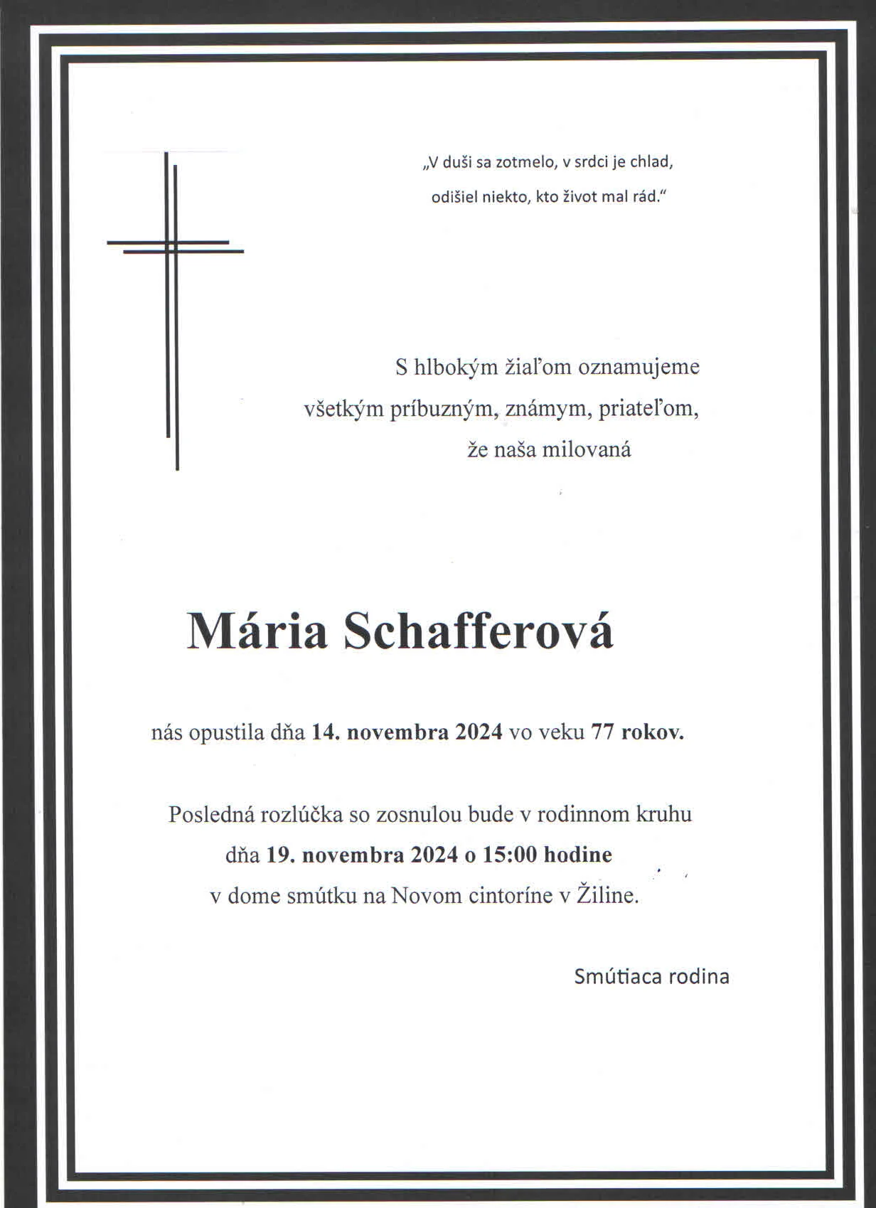Zatiaľ neboli pridané žiadne kondolencie.