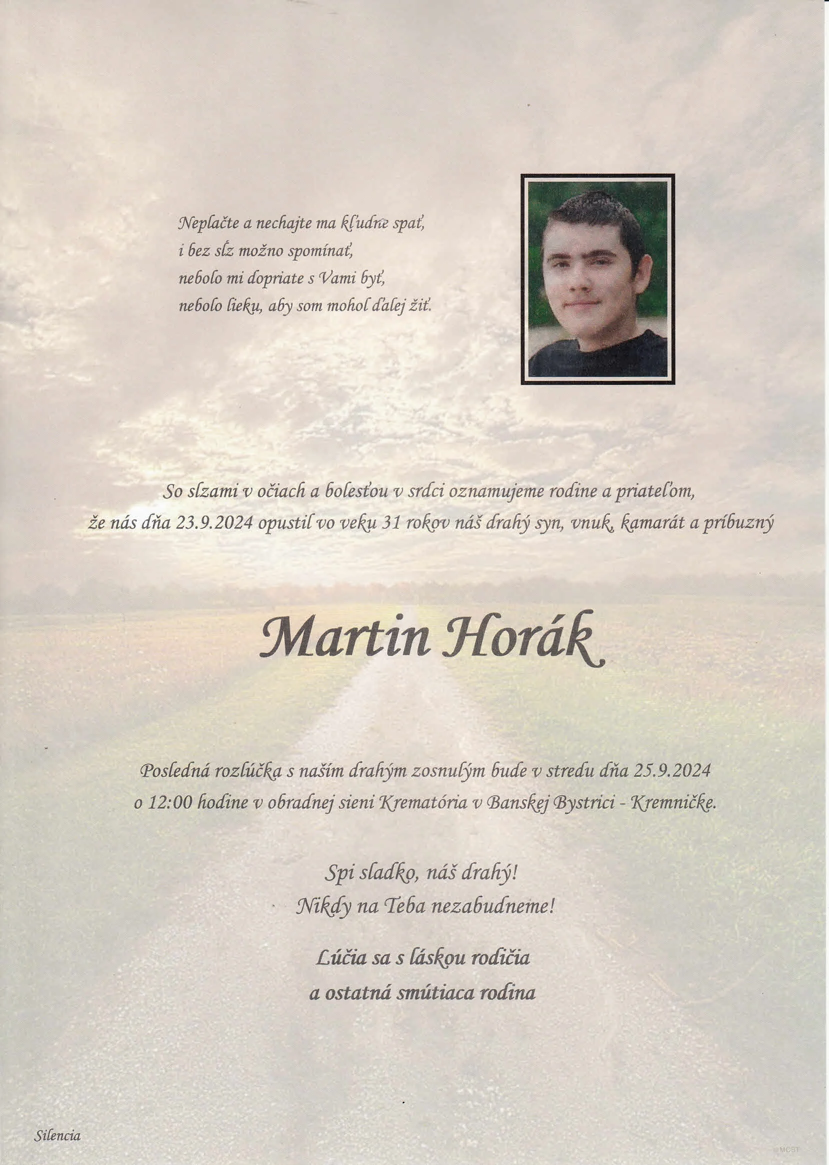 Zatiaľ neboli pridané žiadne kondolencie.