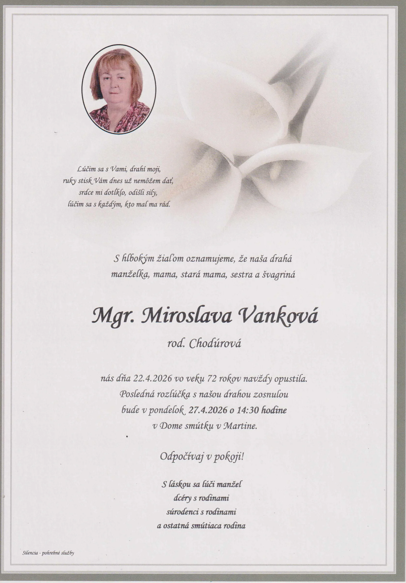 Kolektív Pohrebnej služby Silencia vyjadruje úprimnú účasť v bolestivých chvíľach. Prajeme rodine a blízkym veľa pokoja a vzájomnej podpory.