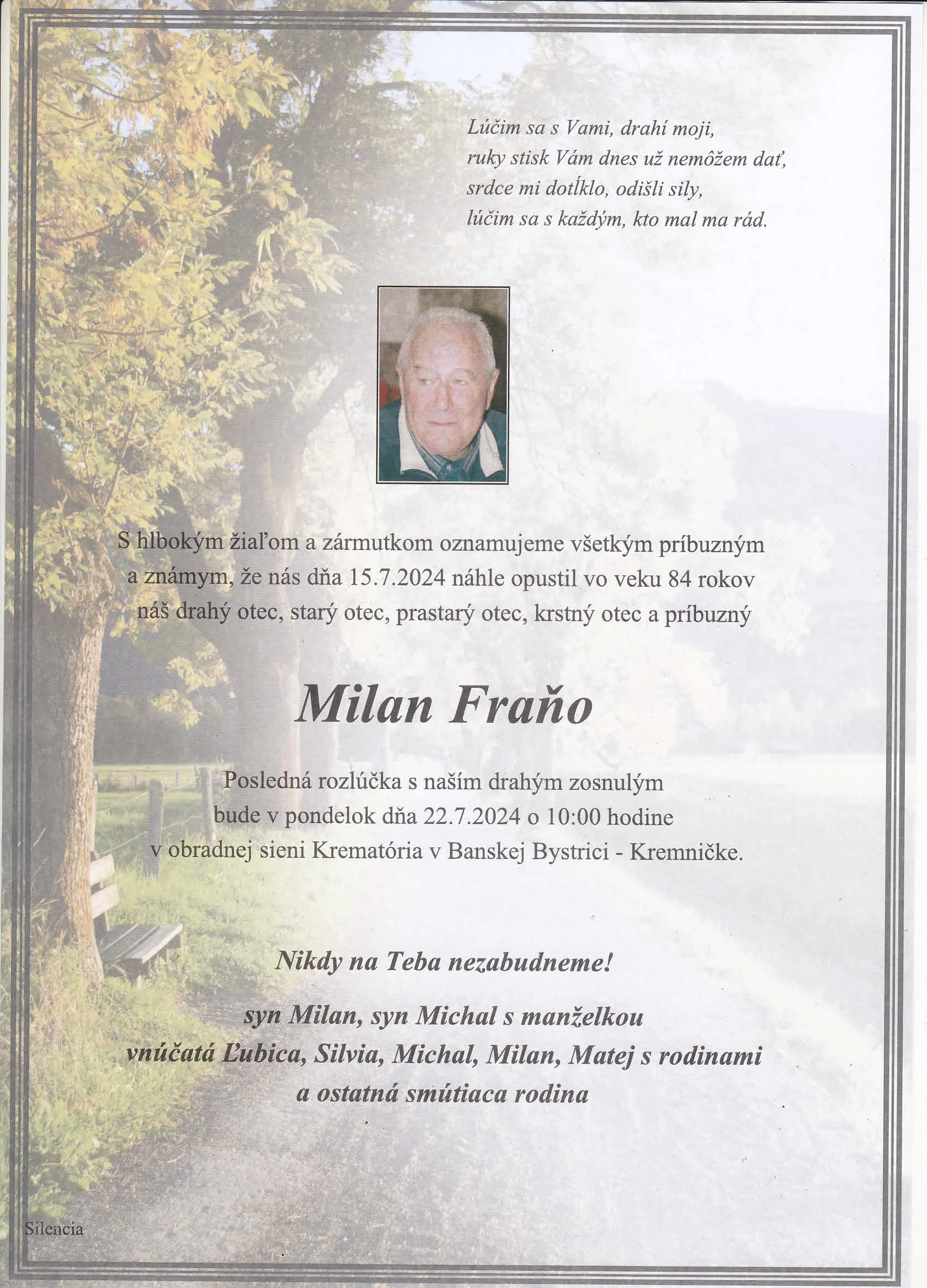 Zatiaľ neboli pridané žiadne kondolencie.
