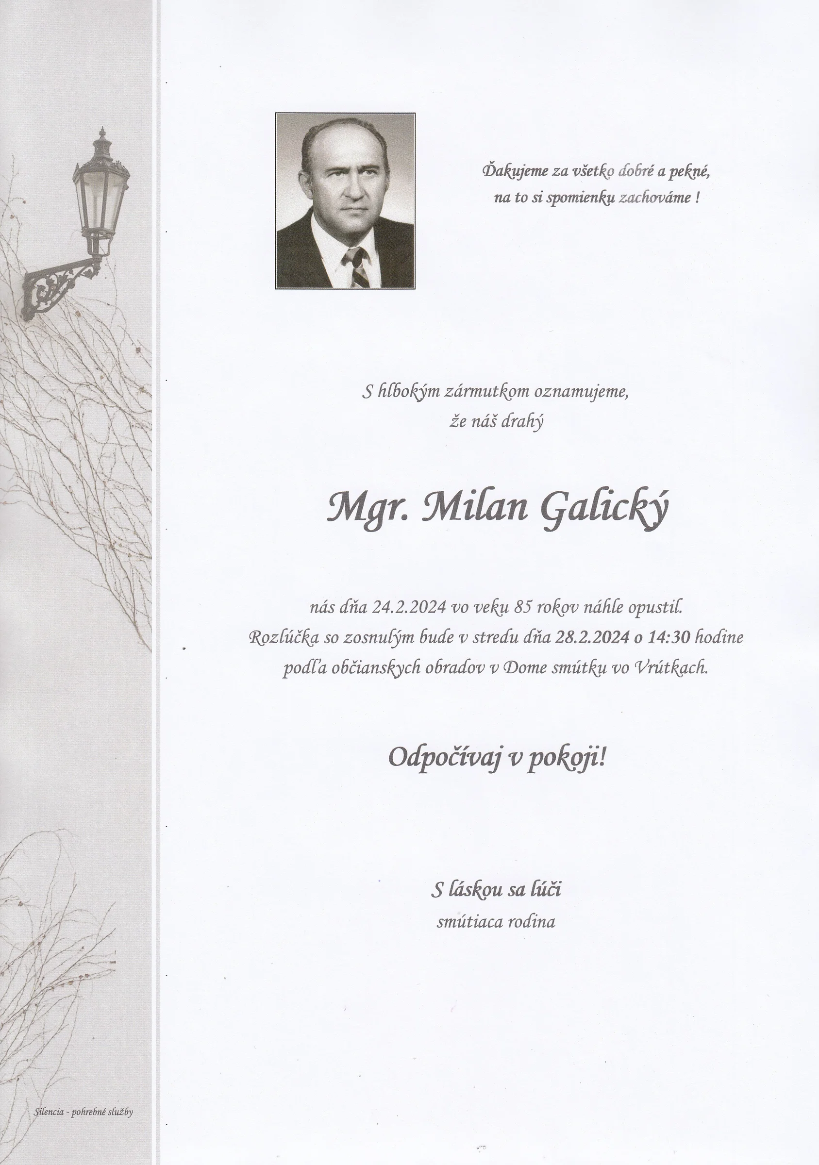Zatiaľ neboli pridané žiadne kondolencie.