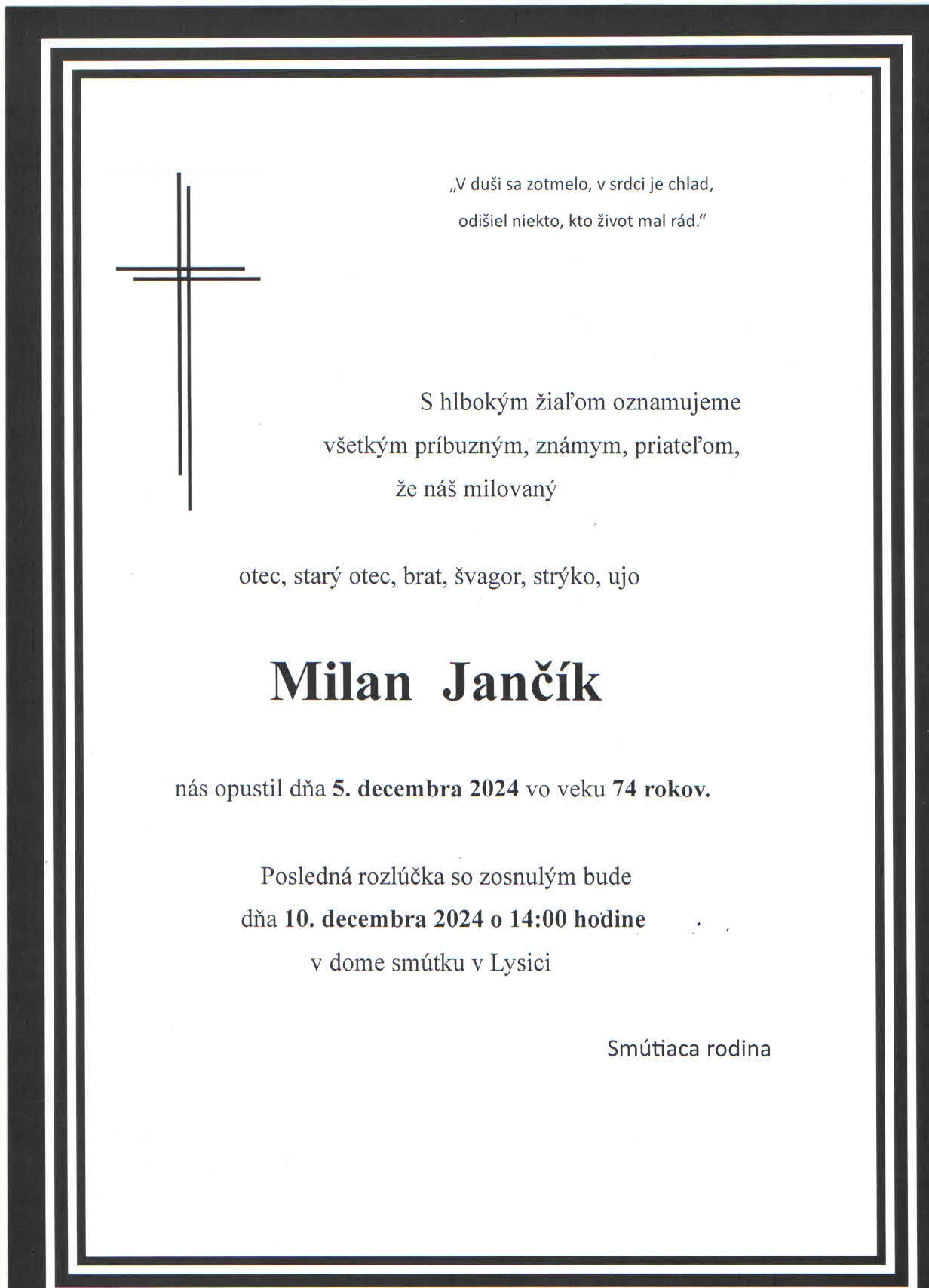 Zatiaľ neboli pridané žiadne kondolencie.