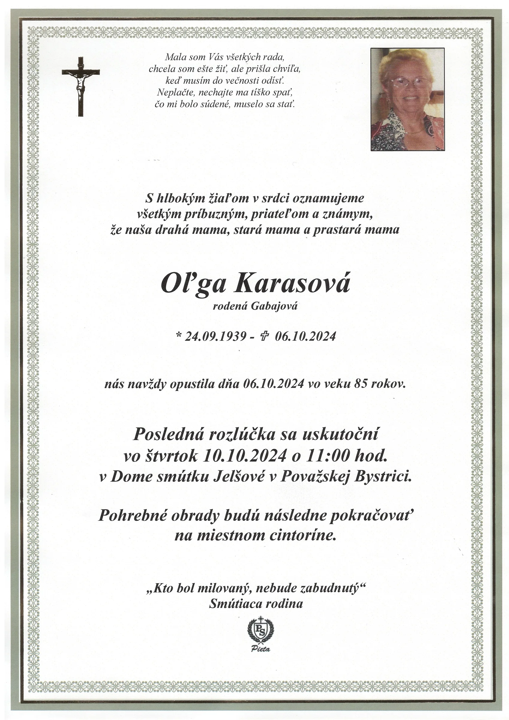 Zatiaľ neboli pridané žiadne kondolencie.