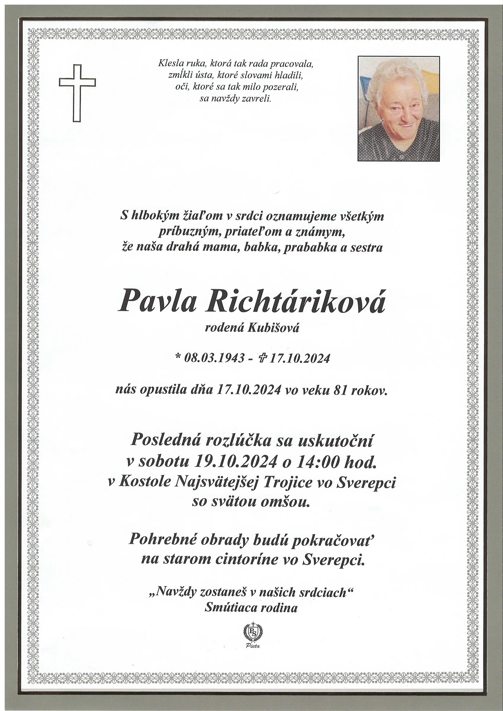 Zatiaľ neboli pridané žiadne kondolencie.