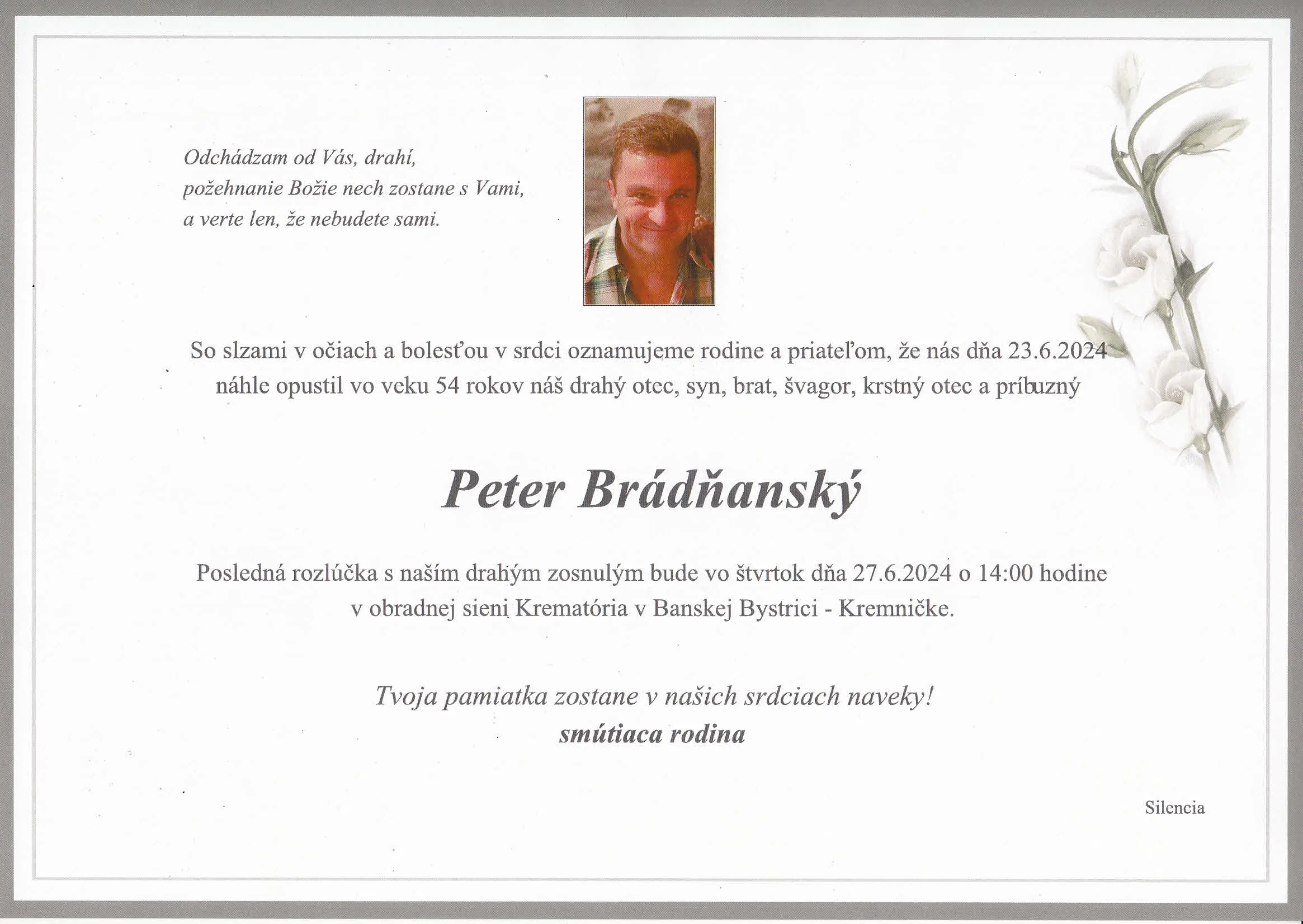 Zatiaľ neboli pridané žiadne kondolencie.