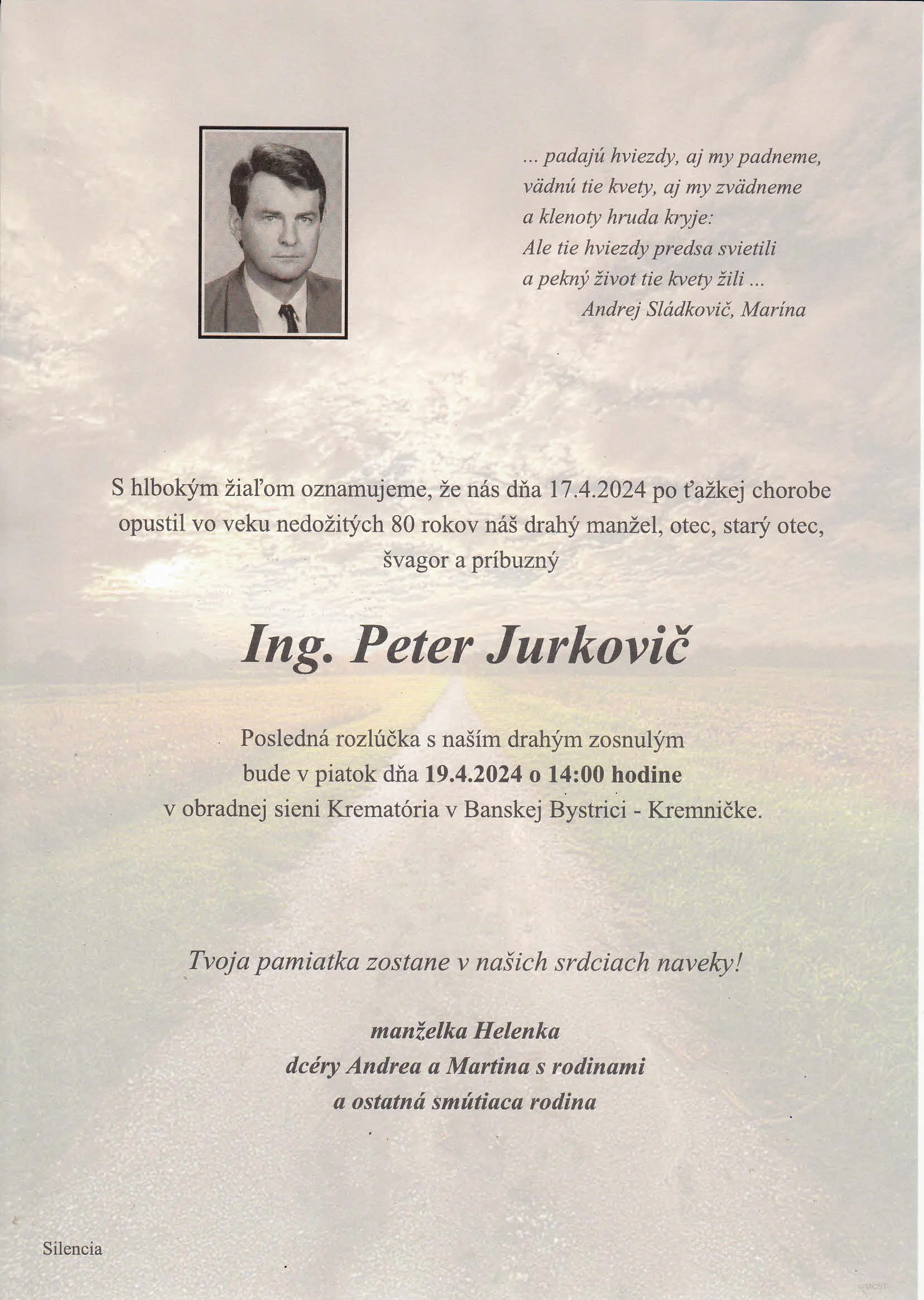 PRIDAŤ KONDOLENCIU