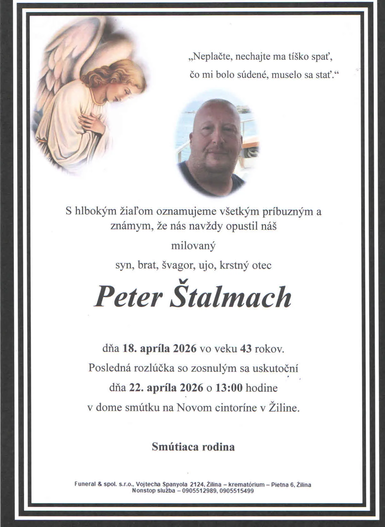Kolektív Pohrebnej služby Funeral vyjadruje úprimnú sústrasť rodine a blízkym. Prajeme Vám veľa síl v chvíľach smútku.