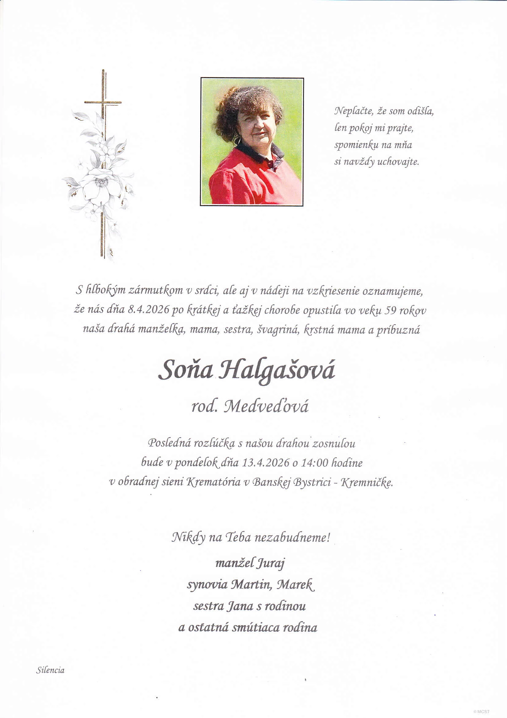 Kolektív Pohrebnej služby Silencia vyjadruje úprimnú účasť v bolestivých chvíľach. Prajeme rodine a blízkym veľa pokoja a vzájomnej podpory.