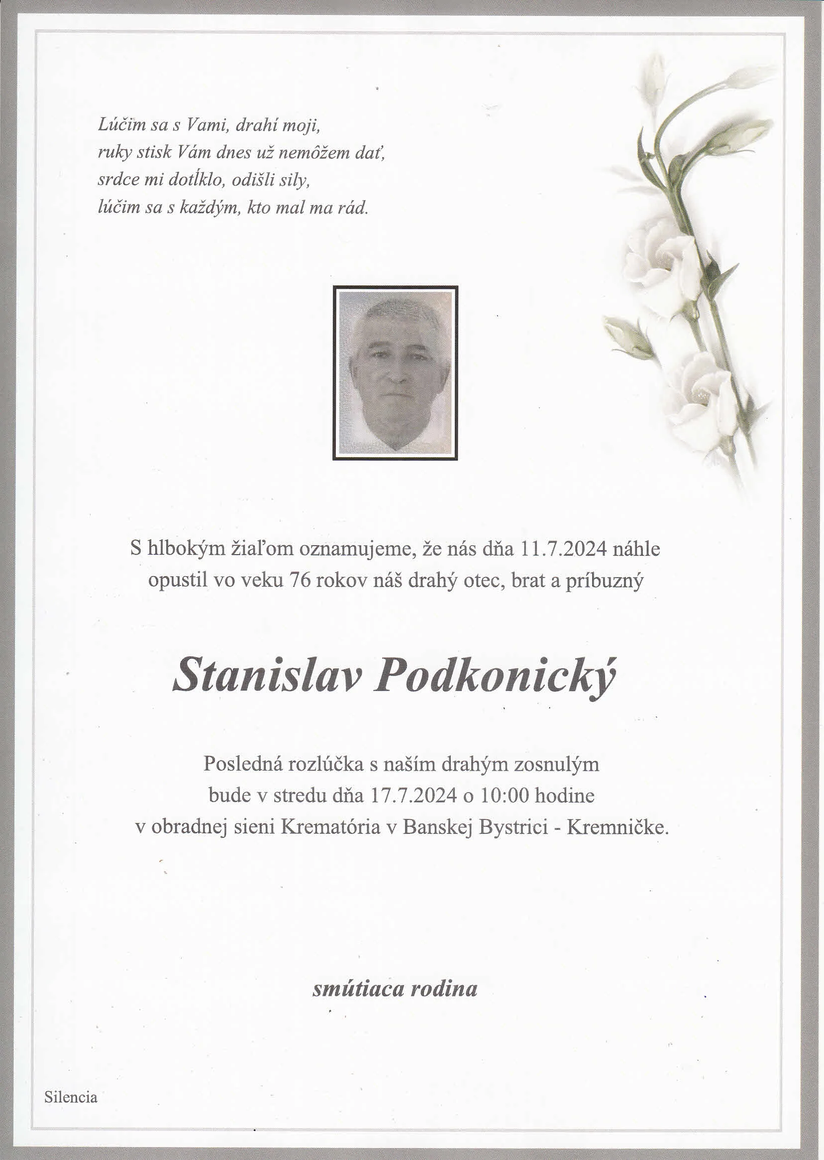 PRIDAŤ KONDOLENCIU