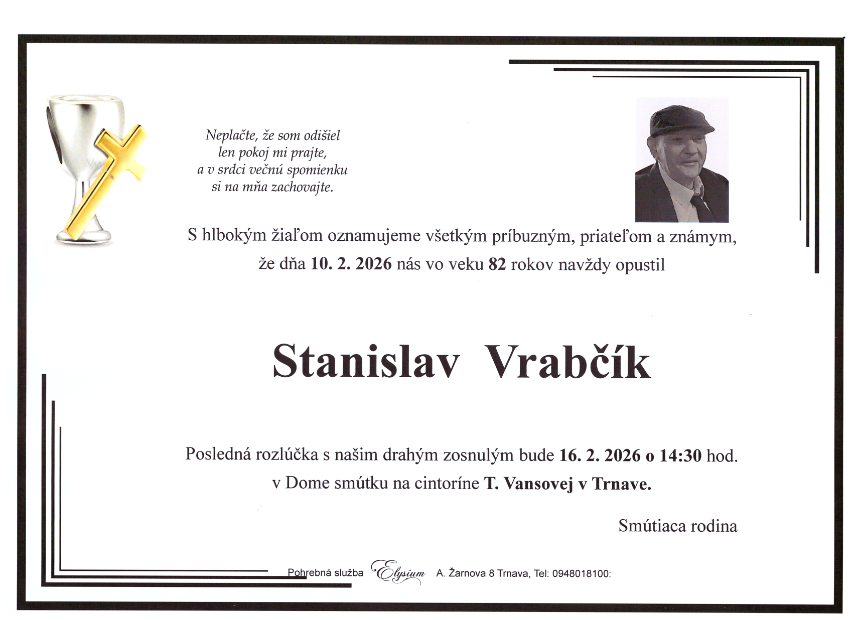 Vyjadrujem úprimnú sústrasť rodine a nech jeho duša nájde pokoj v Božom kráľovstve 🖤