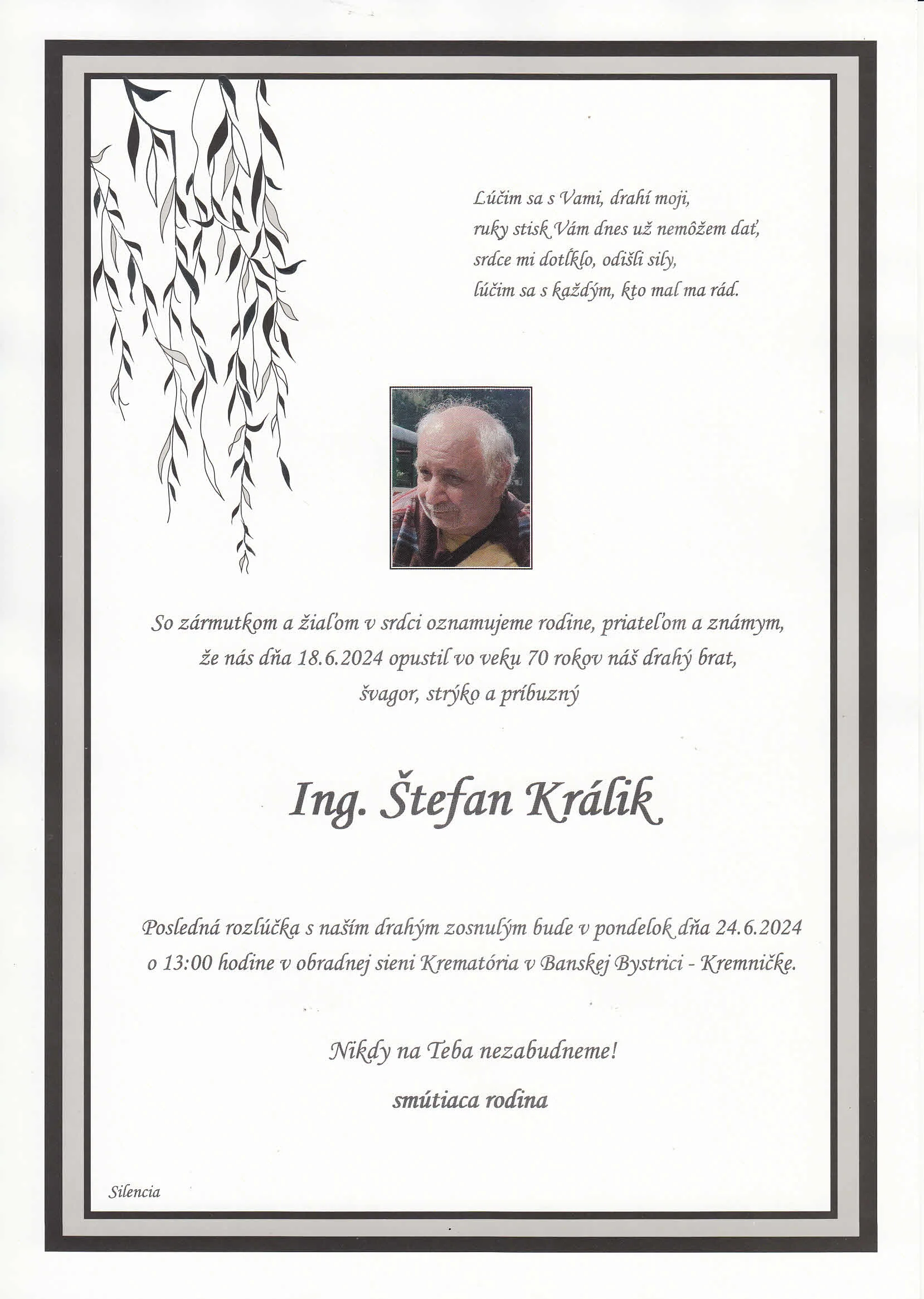 Zatiaľ neboli pridané žiadne kondolencie.