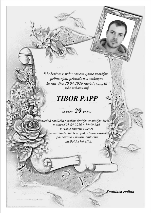 Telo zosnulého bude po pohrebnom obrade pochované v novom cintoríne na Boldockej ulici v Senci