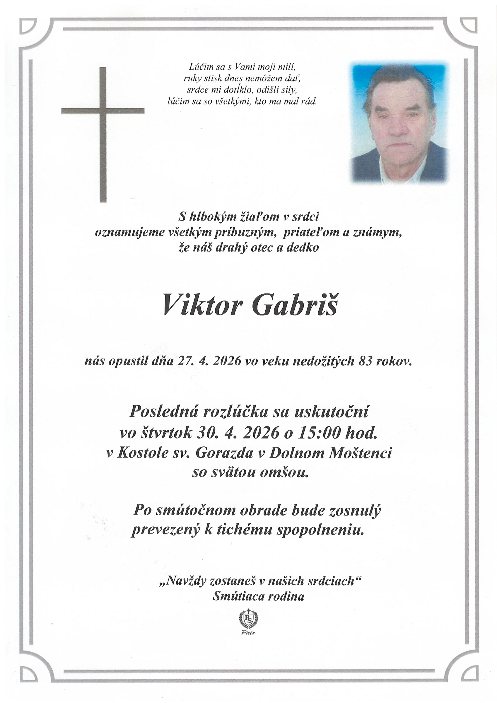 S úctou a súcitom myslíme na všetkých, ktorých zasiahla táto strata. Prijmite, prosím, naše úprimné prejavy sústrasti.
