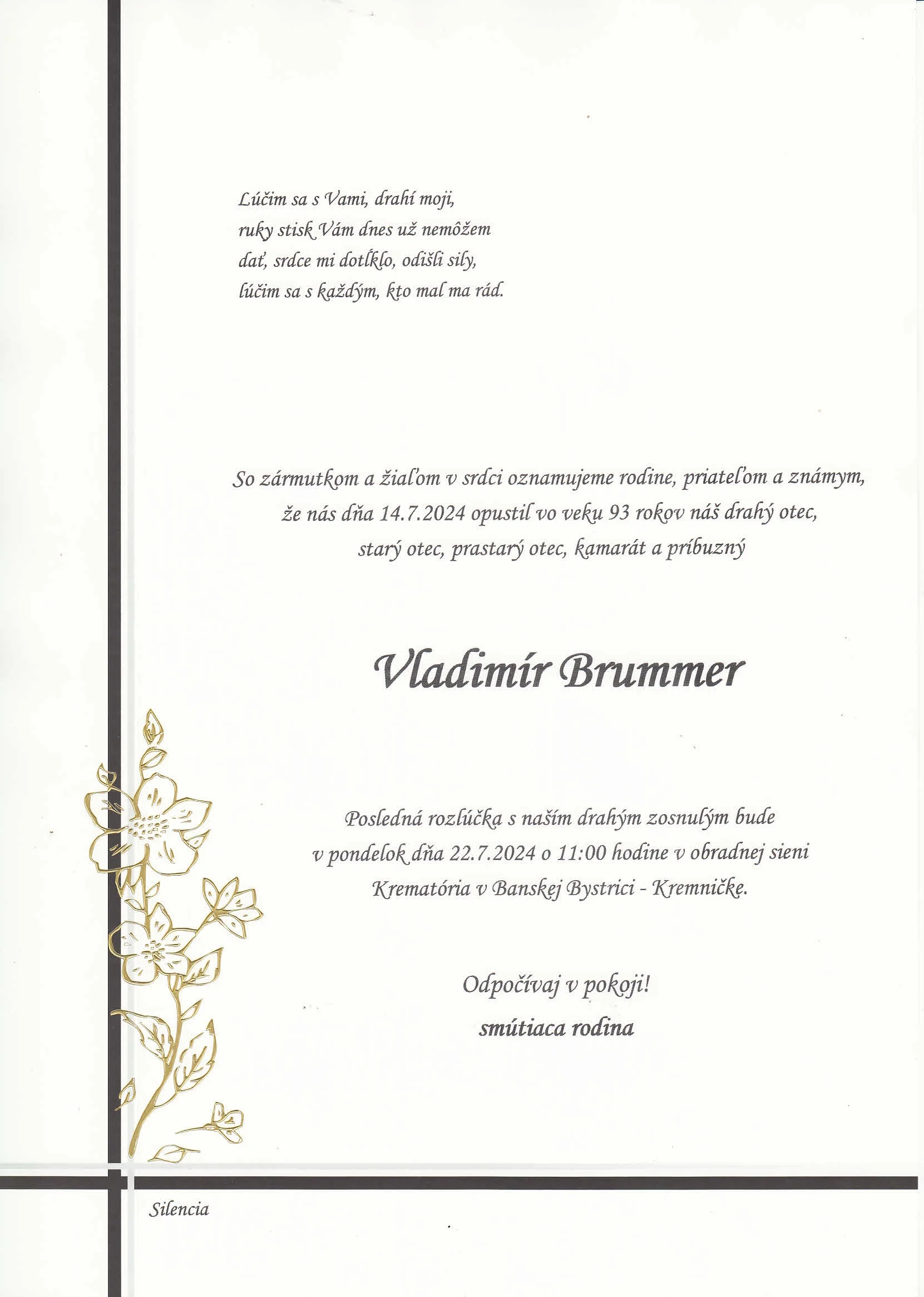 Zatiaľ neboli pridané žiadne kondolencie.