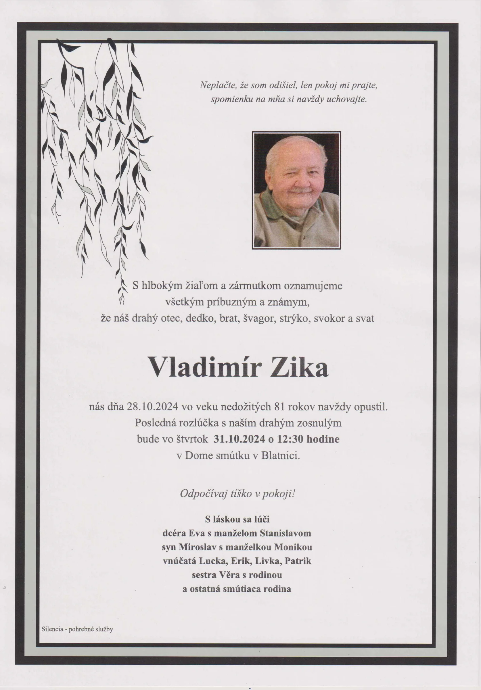 Zatiaľ neboli pridané žiadne kondolencie.