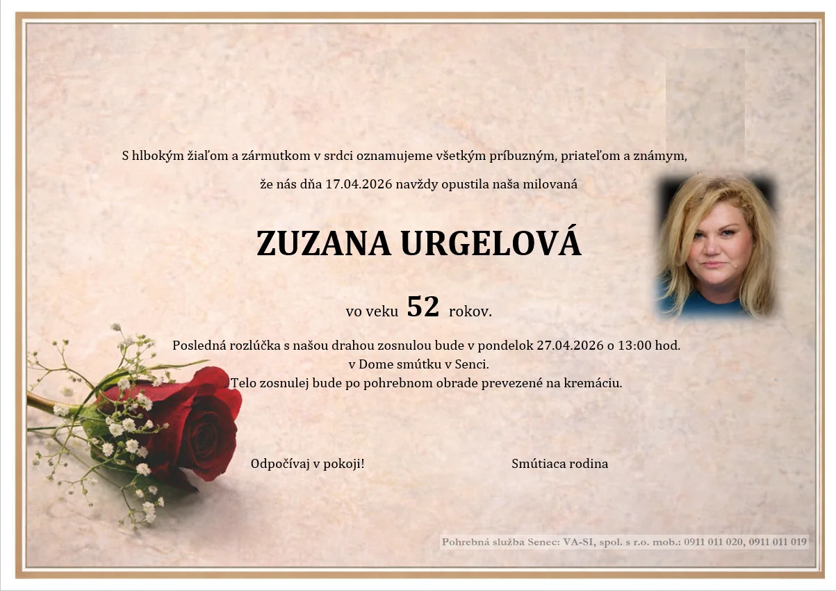 V týchto ťažkých chvíľach vyjadrujeme úprimnú sústrasť rodine, príbuzným a všetkým blízkym. Nech zostanú živé najmä krásne spomienky.
